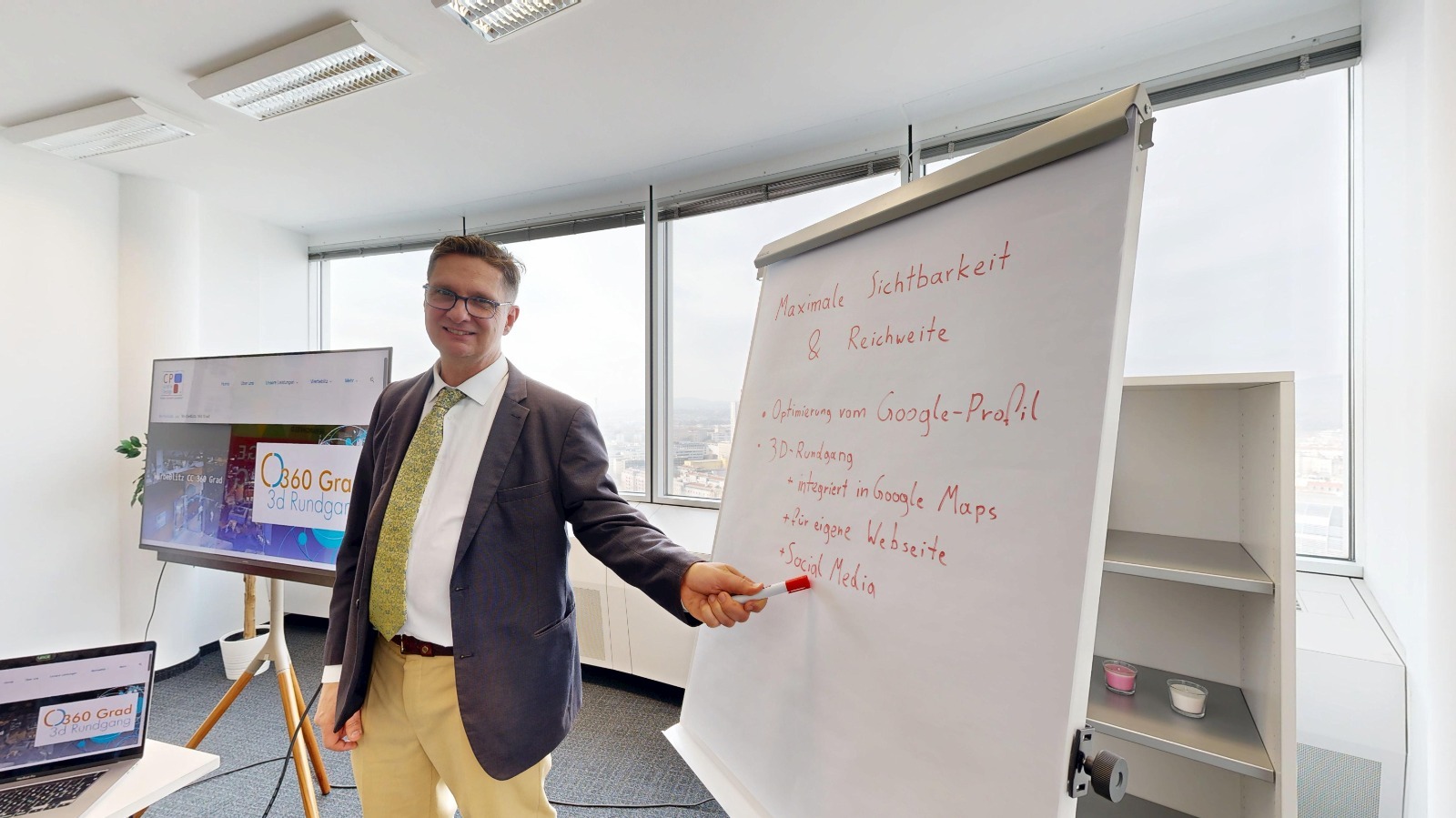 Die Präsentation von CP Grafikdesign in der Business Lounge im 23. Stock des Millennium Towers beeindruckte durch ihre klare strategische Ausrichtung und den innovativen Einsatz modernster Technologien. Besonders hervorgehoben wurde der interaktive 3D-Rundgang, der den Gästen einen lebendigen Einblick in die vielfältigen Dienstleistungen und kreativen Arbeitsprozesse bot.